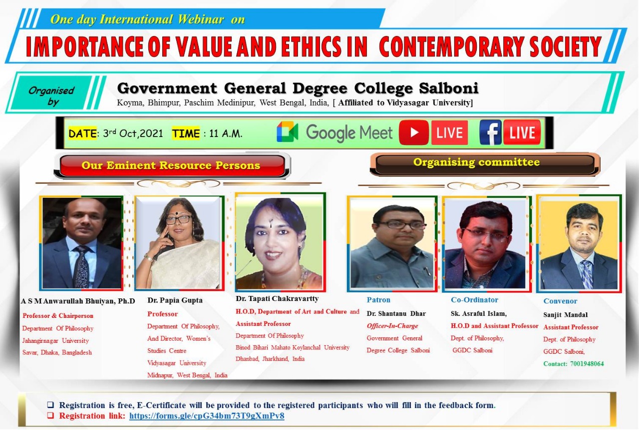 Professor Dr. A S M Anwarullah Bhuiyan will deliver lecture on "Importance of Value and Ethics in Contemporary Society" in One Day International Webinar in West-Bengal, India