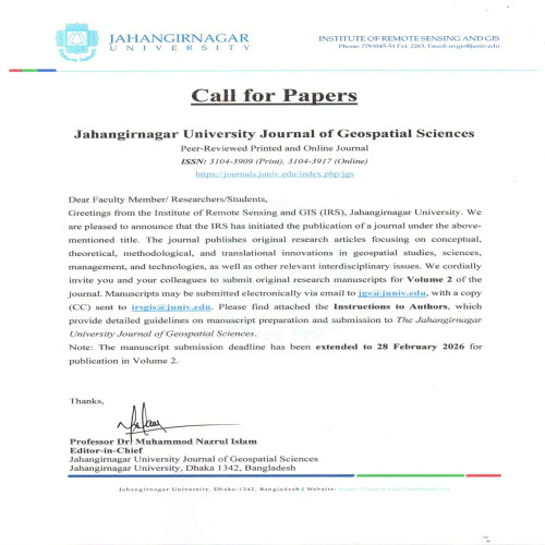 - Call for Papers : Jahangirnagar University Journal of Geospatial Sciences