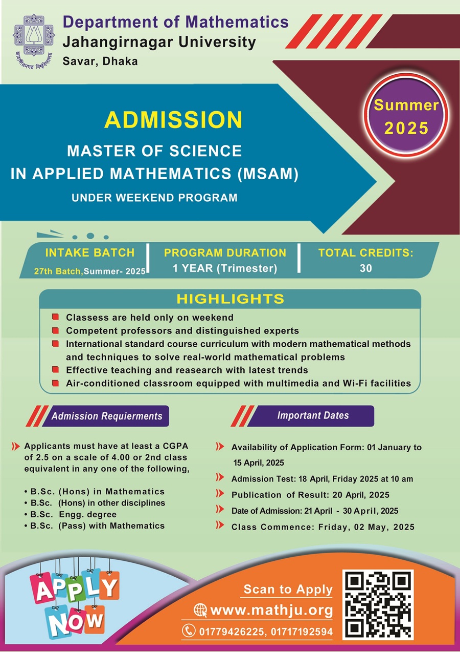Master of Science in Mathematics Program, Dept of Mathematics, JU :